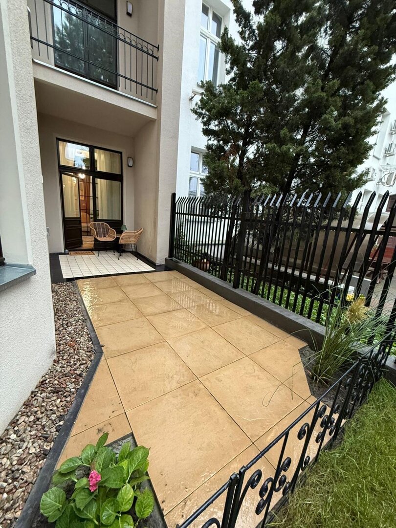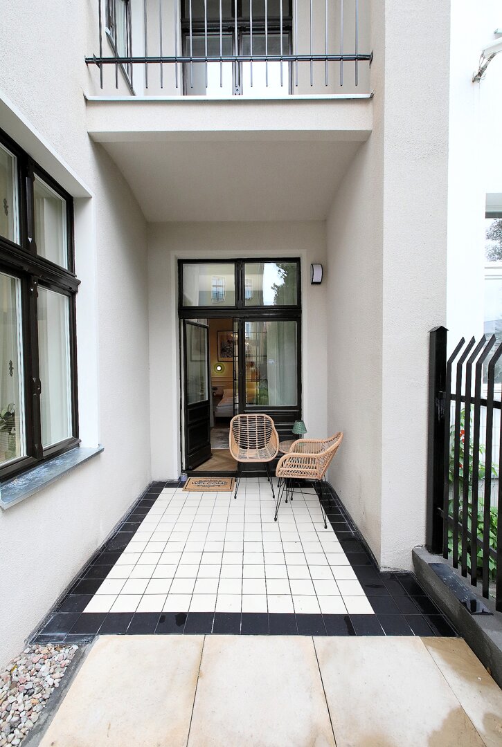 Do apartamentu przynależy indywidualny taras z meblami ogrodowymi.