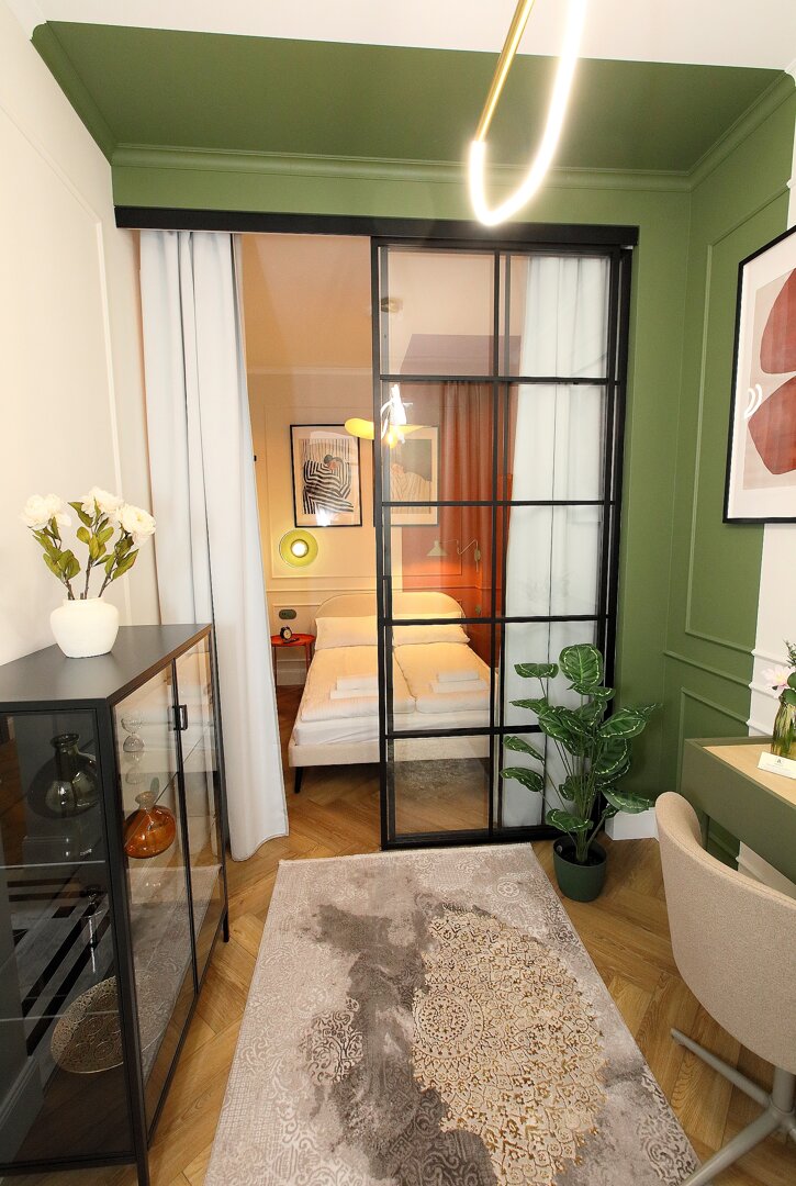 Położenie apartamentu od strony wewnętrznej budynku gwarantuje ciszę i spokojny sen.